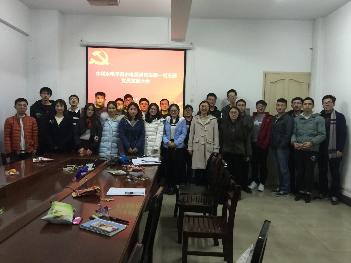 为进一步深入学习贯彻党的精神,2017年11月30日晚,学院水电系研究生第一党支部在水工结构楼四楼会议室进行了一次生动活泼的党日活动,本次活动的主题是“学懂弄通十九大精神,做实青年梦,托起中国梦”。本次活动由支部书记李辉成同志主持,25名支部成员、党总支委员姬翔同志以及水电8支部、水利1支部评委各1人参会。