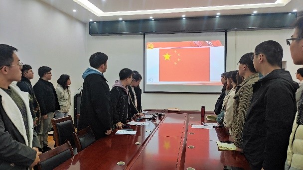 会议第三项内容为关于接收董建华、张仲谋同志为党员的发展问题,在支部书记邵欣欣同志的主持下,严格按照党组织接收党员程序召开。组织委员何子贤审核到会党员人数以及入党材料,并表明可以进行党员转正大会。然后全体成员起立奏唱国歌,党员转正大会正式开始。