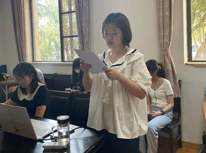 接下来王茜同志通过PPT介绍了自己的基本情况,并宣读了《转正申请书》,随后王茜同志的入党介绍人介绍了其预备期间情况,表示王茜同志具有端正的入党动机,工作认真负责,积极学习党的理论知识,赞成其如期转正。接下来支部组织委员郭姝婕同志结合培养、考察情况,代表支部报告讨论结果,宣布转正对象具备党员基本条件,同意其如期转正。
