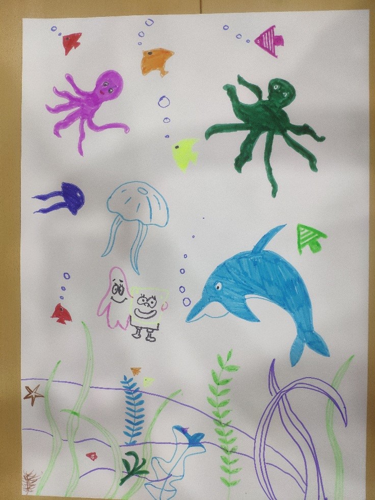 在一起画世界这个环节,四人一组合作,画出自己心中的世界,涌现了不少佳作。