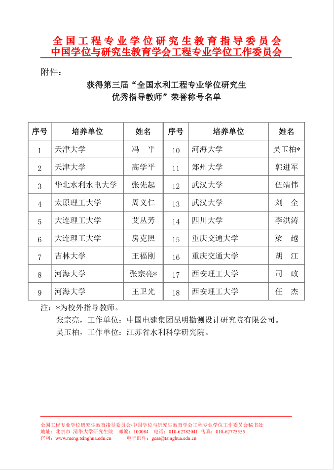公司师生在2019年全国水利工程专业学位研究生教育先进评选中再获佳绩