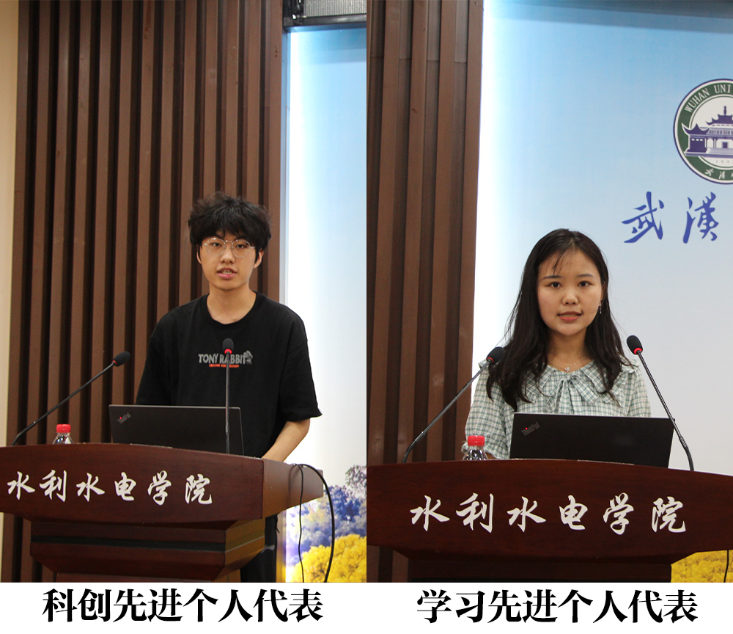 副经理程磊、夏军强分别宣读了学习和科创竞赛表彰文件。本年度学院共有5个优良学风班级,17个优良学风寝室,118位学习先进个人,22位学习进步个人,62位课外学术科技创新活动先进个人受到表彰。随后,学习先进个人代表2019级农业水利工程本科生茹汇麟,课外学术科技创新活动先进个人代表2020级水文水资源专业本科生康圣屿先后上台发言,分别介绍了自己取得优异成绩和参加各类科创竞赛的体验,并鼓励同学们努力学习,提高效率,同时积极参加科创竞赛,全方面锻炼自己。