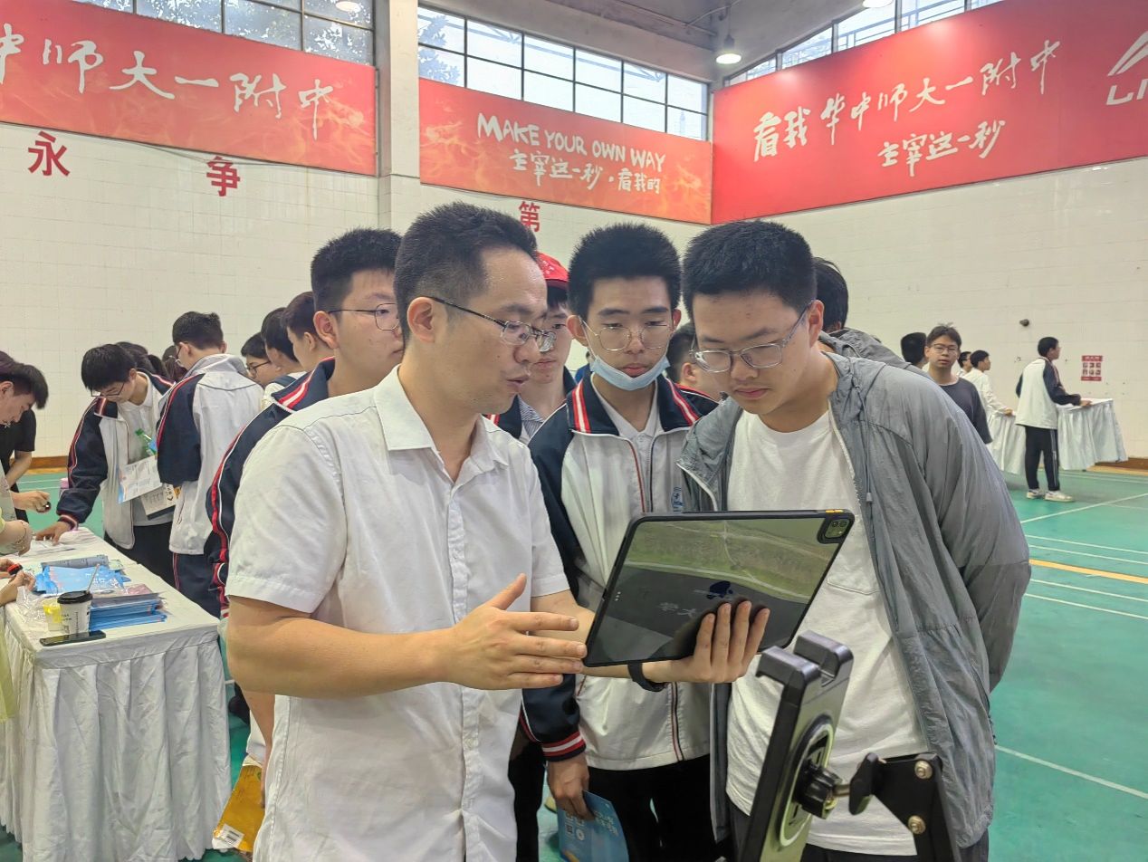 求知在武大,成才在珞珈。在老师及成员的积极演示、耐心讲解下,为期三天的科技节上,学院和水国重实验室展位吸引了华师大一附中众多同学和老师的驻足观看、体验。实验室成员积极宣传威廉希尔创造、创新、创业的先进教育理念,用互动体验的形式将科技成果送入高中校园,不仅展示学院、国重在智慧水利、生态水利领域最新成果,也为青少年科学素养的提升贡献了力量。