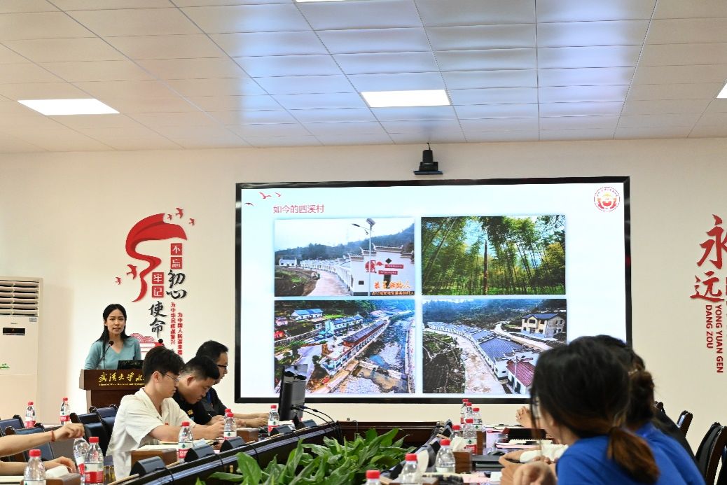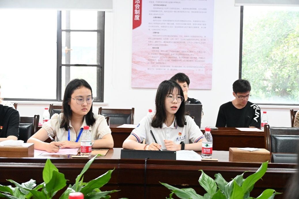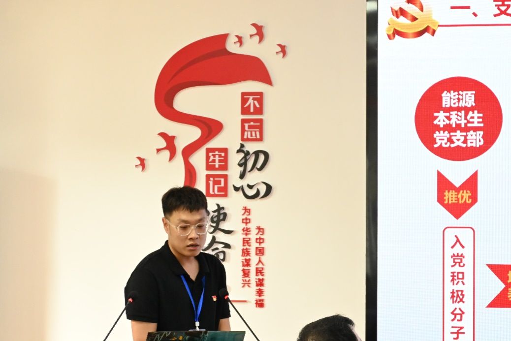 三峡大学水利与环境学院研究生第三党支部王宇同志作“党建引领促发展,兴水报国谱新篇”的员工党建工作综述,从“党建引领,团建赋能,凝聚青年力量”,“党建引领学科发展,厚植专业优势”,“党建引领队伍建设以质为先育人才”,“党建引领社会服务,同心聚力办实事”四个方面做党建工作汇报。他们依托水利工程、土木水利及工程管理学科底蕴和专业优势,以习近平生态文明思想为指引,以践行“长江大保护”为号召,落脚“长江大保护”国家战略发展需求,以扎根基层服务社会为特色,以支部一流党建助力学院一流学科发展,强化基层党支部引领作用。