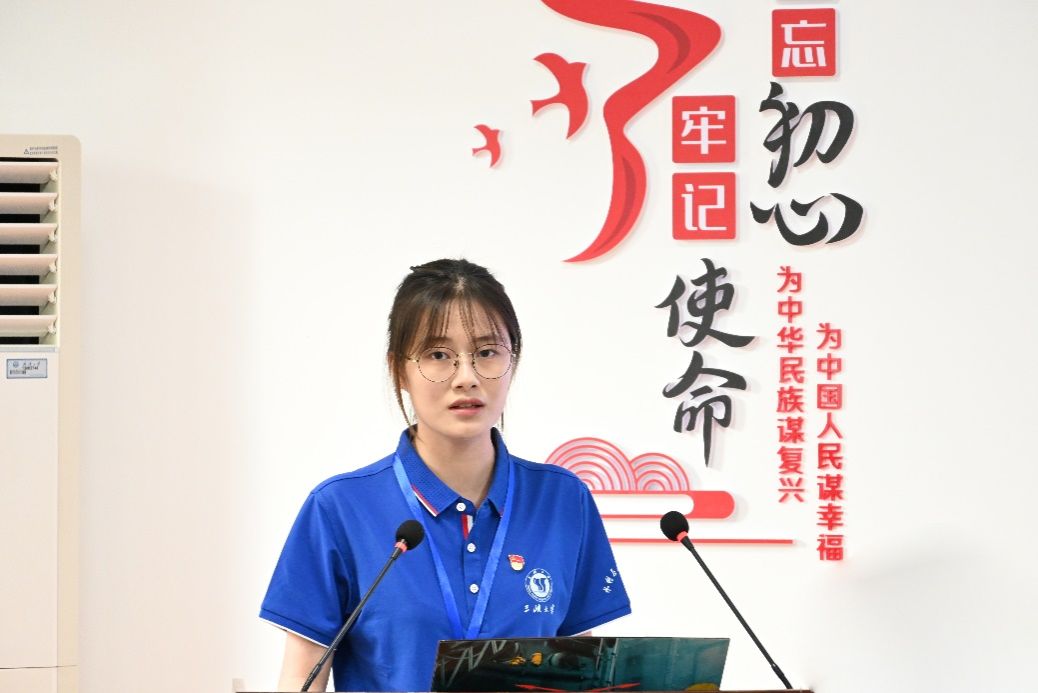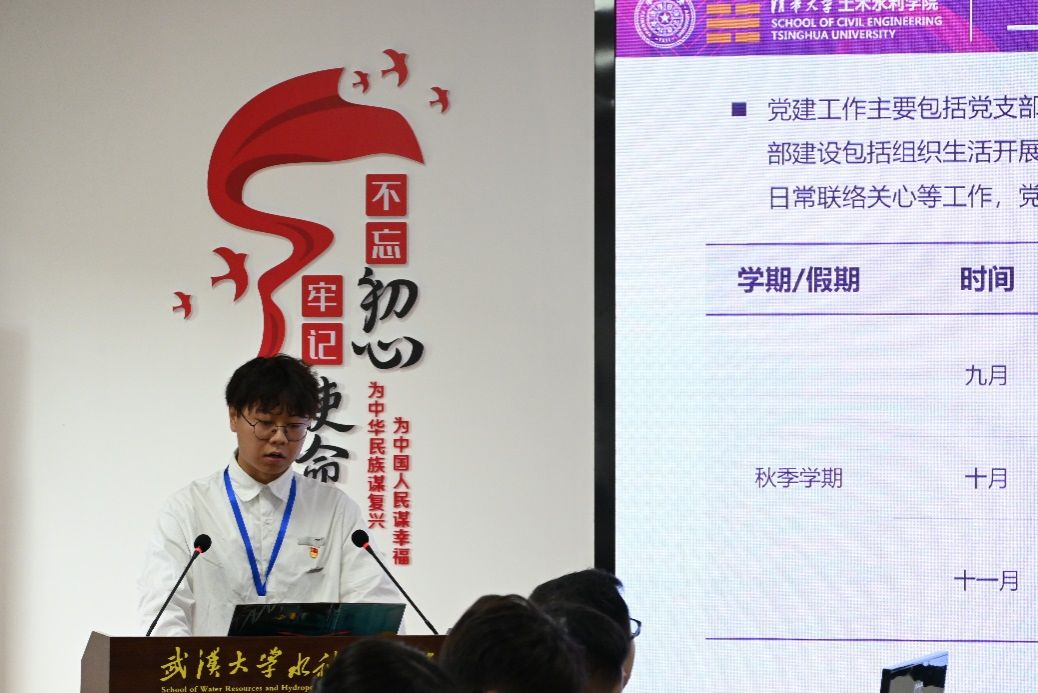 清华大学水利系研究生会、水硕22党支部原文哲同志,作“深学细照笃行,让党建工作在清华‘落地生根’”的交流汇报,他从时间轴线角度阐释了党建工作和研团总支的工作内容。他总结道,2023年是全面贯彻落实党的二十大精神的开局之年,面向新征程,站上新起点,我们必须紧跟以习近平同志为核心的党中央,奋进新征程、建功新时代!