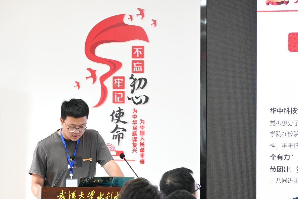 华中科技大学土木与水利工程公司党务中心主席团周琨皓同志作“固本强基筑堡垒,党旗领航风帆劲”的党建工作汇报。他围绕“精耕凝心聚魂”,“聚焦赋能增效”,“强化示范引领”等方面,介绍了学院研究生党组织坚持“组织管理、制度管理、考核管理,自我管理”四位一体的具体举措。他提出,校院联动到位、基层指导到位和创新融合到位,在培养高素质党员、推进学术研究和社会服务等方面有着积极作用。