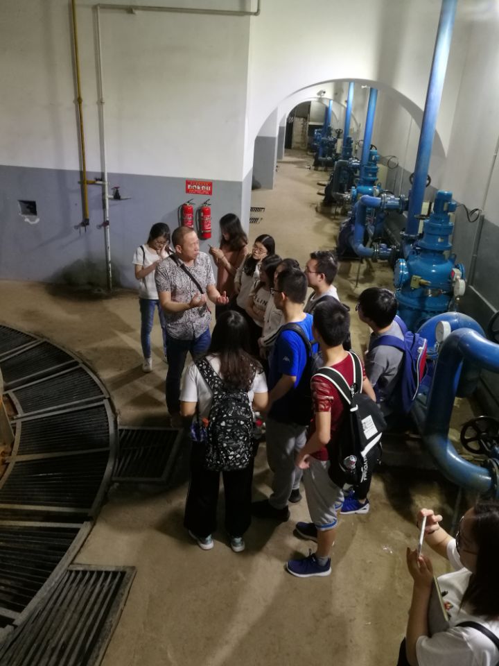 在樊口泵站现场,泵站技术人员向师生详细介绍了流域水系特征和泵站枢纽概况,并分组带领师生深入泵站枢纽建筑物,对泵站关键工程进行详细讲解。结合员工在校所学的理论知识,泵站技术人员对引水建筑物、进水建筑物、主厂房、水泵结构、主电机结构、控制设施、配电设备、辅助设备等逐一现场讲解。员工兴趣浓厚,积极提问,收到了良好的教学效果。