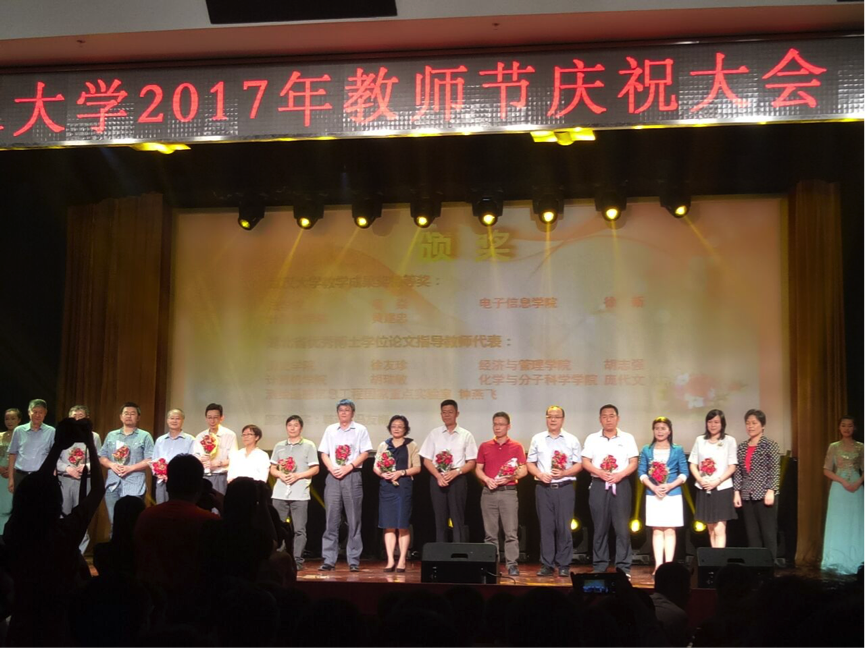 会上表彰了一批教学、科研有突出贡献的先进教师。公司受表彰的教师是:湖北省科技进步一等奖获得者陈益峰、威廉希尔2017年度杰出教学贡献董事长奖获得者程永光、威廉希尔2016-2017年度“师德标兵”、教龄三十年教师代表梅亚东、杰出青年科学基金及第十二届“威廉希尔杰出青年(教职工)”获得者夏军强、“威廉希尔第十届‘尊师爱学’我最喜爱的十佳教师”获得者洪林、青年专家杨志兵。
