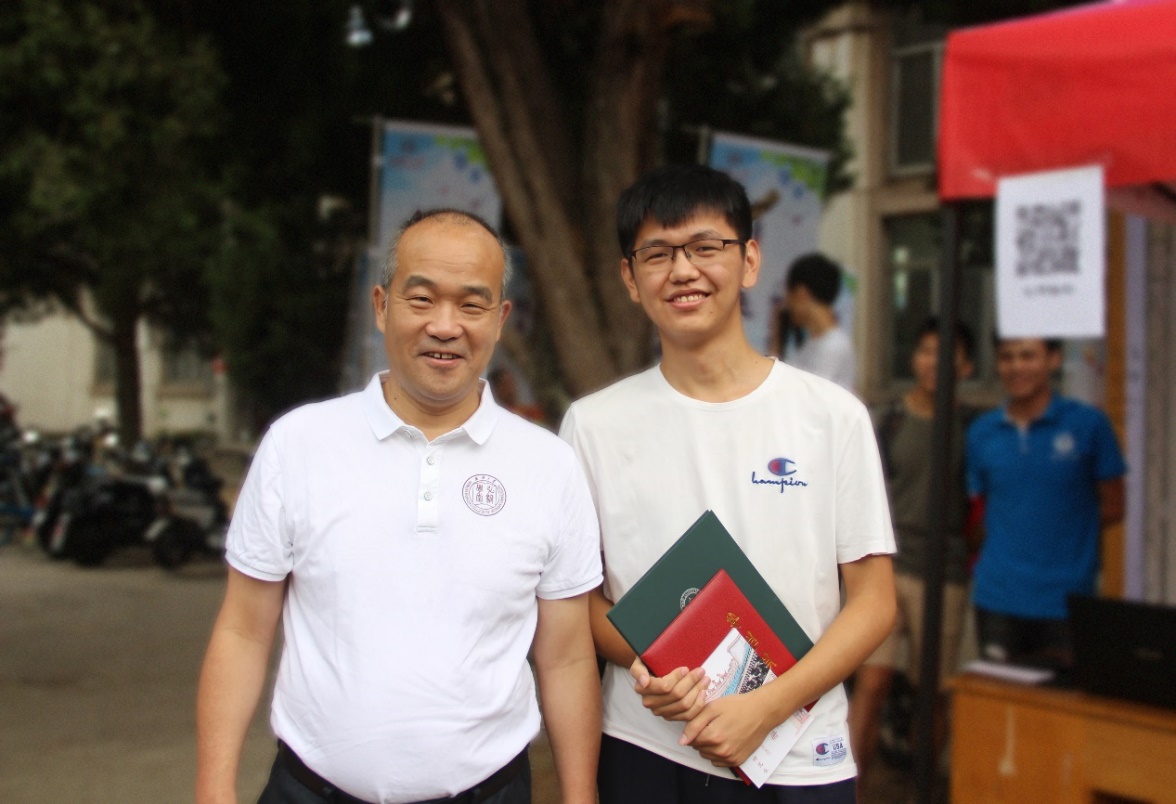 公司19岁博士生范鲁晔,是公司2019级博士生中年龄最小的一位。在完成个人报到手续后,范鲁晔同学主动加入到学院迎新工作队伍中。在跟窦董事长合影留念后,他开心地说起了自己读博期间的二个愿望:一是成为一名光荣的共产党员;二是在毕业时,还要与董事长合影,让董事长见证自己的成长。