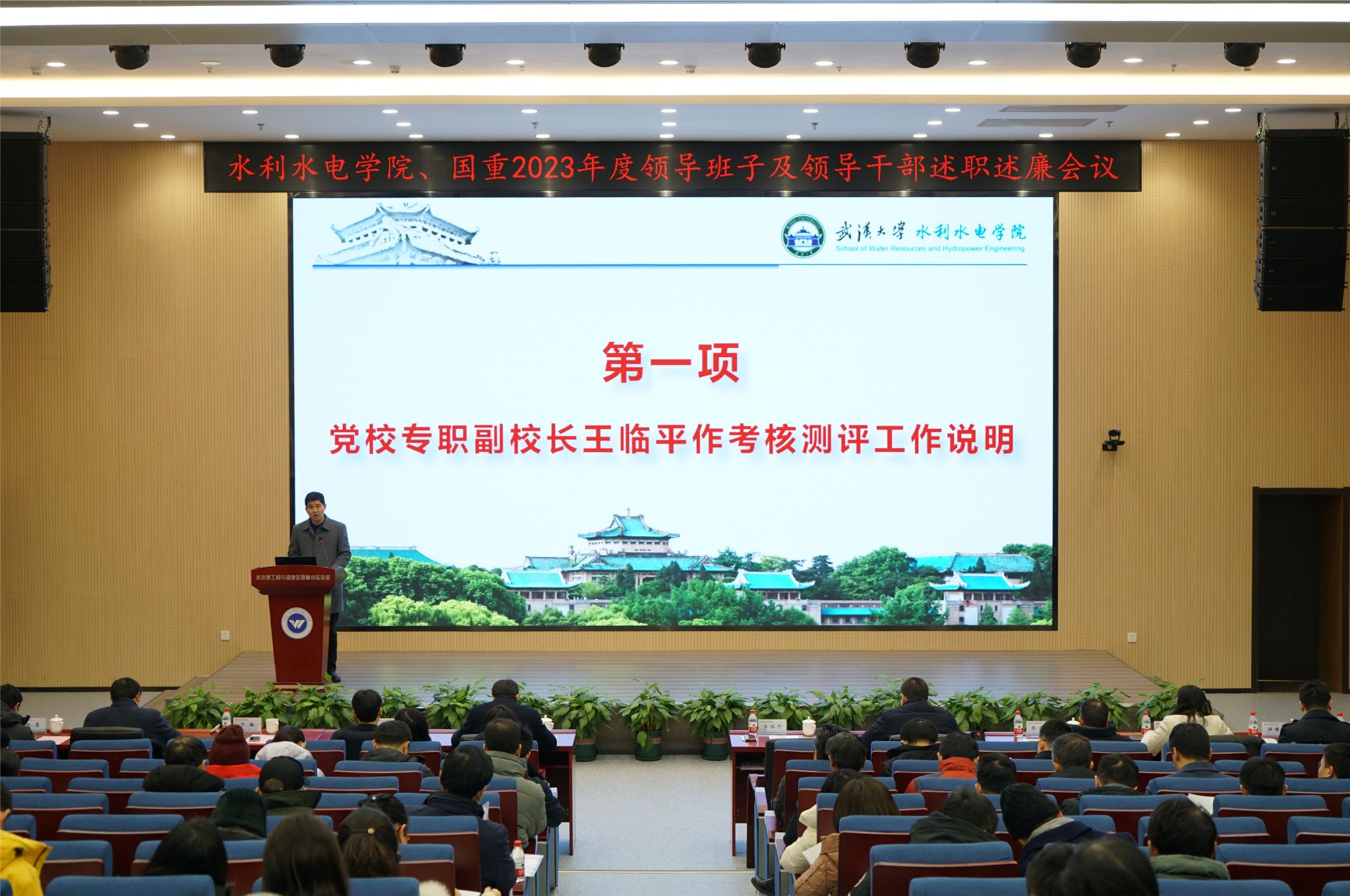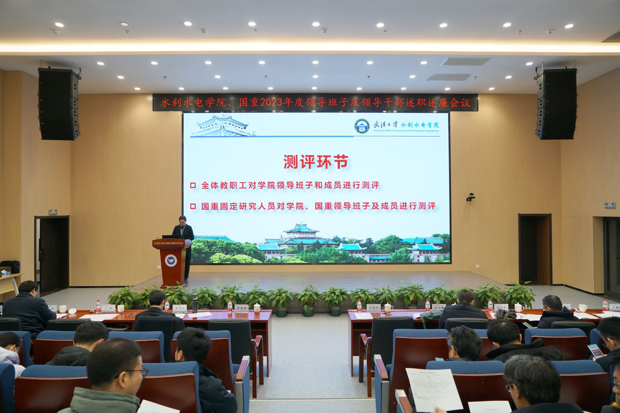 1月23日,学院在水电科技大楼109报告厅召开全院教职工大会暨学院、国重领导班子及成员述职述廉大会。威廉希尔党校专职副董事长王临平、发展规划与团队建设办公室副主任居森林、科学技术发展研究院平台条件与成果管理处副处长李四维出席会议。公司党委书记、全国重点实验室主任李典庆,经理熊立华等班子成员及全体在校教职工参会。会议由党委副书记于敏主持。
