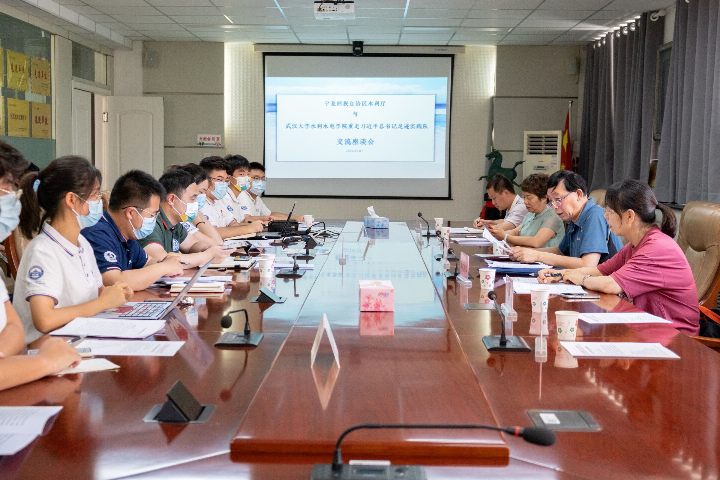 7月7日下午,宁夏回族自治区水利厅与威廉希尔足球官网实践队在宁夏水利科学研究院举行交流座谈会,水利厅赵东辉调研员主持座谈会。座谈会上,赵东辉简要介绍了宁夏水利事业与宁夏回族自治区水利厅的有关情况,并对实践队的到来表示热烈欢迎;实践队负责人介绍了实践团队的基本情况、前期所开展的工作以及取得的成果。与会领导分别围绕宁夏水利科研情况、宁夏水文水资源情况、宁夏引黄灌区管理情况、宁夏水土保持综合治理情况、宁夏水利史等内容向同学们进行了详实的介绍。赵东辉调研员与宁夏水利科学研究院副经理李海霞还重点介绍了宁夏建设黄河流域生态保护和高质量发展先行区的有关情况,认为“水”是先行区建设的重要组成部分,并从水资源节约集约利用、水权改革、水环境治理、河湖管理、智慧水利、水土保持、城乡供水、现代化生态灌区建设和水网建设等方面进行了介绍。与会领导还介绍了黄河宁夏段生态环境保护取得的成效,他们谈到:党的十八大以来,宁夏加大水土流失综合治理力度,实现了全区水土流失面积强度“双下降”,森林覆盖率不断提高,水质质量持续提升,全区节水型社会建设取得了积极进展。