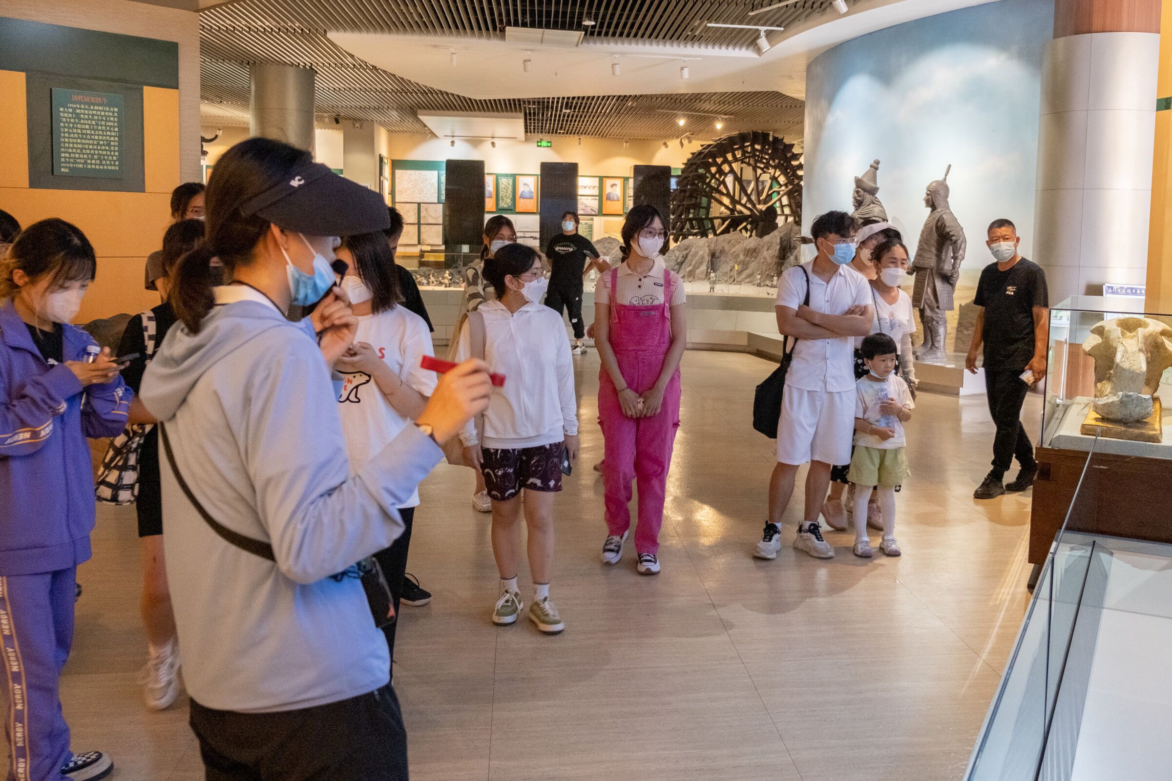 随后,实践队来到宁夏水利博物馆参观学习。水利博物馆以“传承水历史、弘扬水文化”为理念,展示了2000多年来宁夏水利发展史,全面反映了新中国成立以来宁夏水利事业建设取得的成就。从司马迁“水之为利害”到郭守敬“因旧谋新”,从“兴水利以尽地利” 到“河渠为宁夏生民命脉”,无不映衬着先人们对治水经验的深刻体悟。一件件实物、一幅幅照片、一个个故事,通过参观学习,实践队员们从历史中感受到水利之兴与经济社会发展息息相关,增进了对宁夏黄河历史与文化的了解,真切感受到新中国成立以来以来特别是党的十八大以来宁夏水利事业和生态文明建设取得的伟大成就。