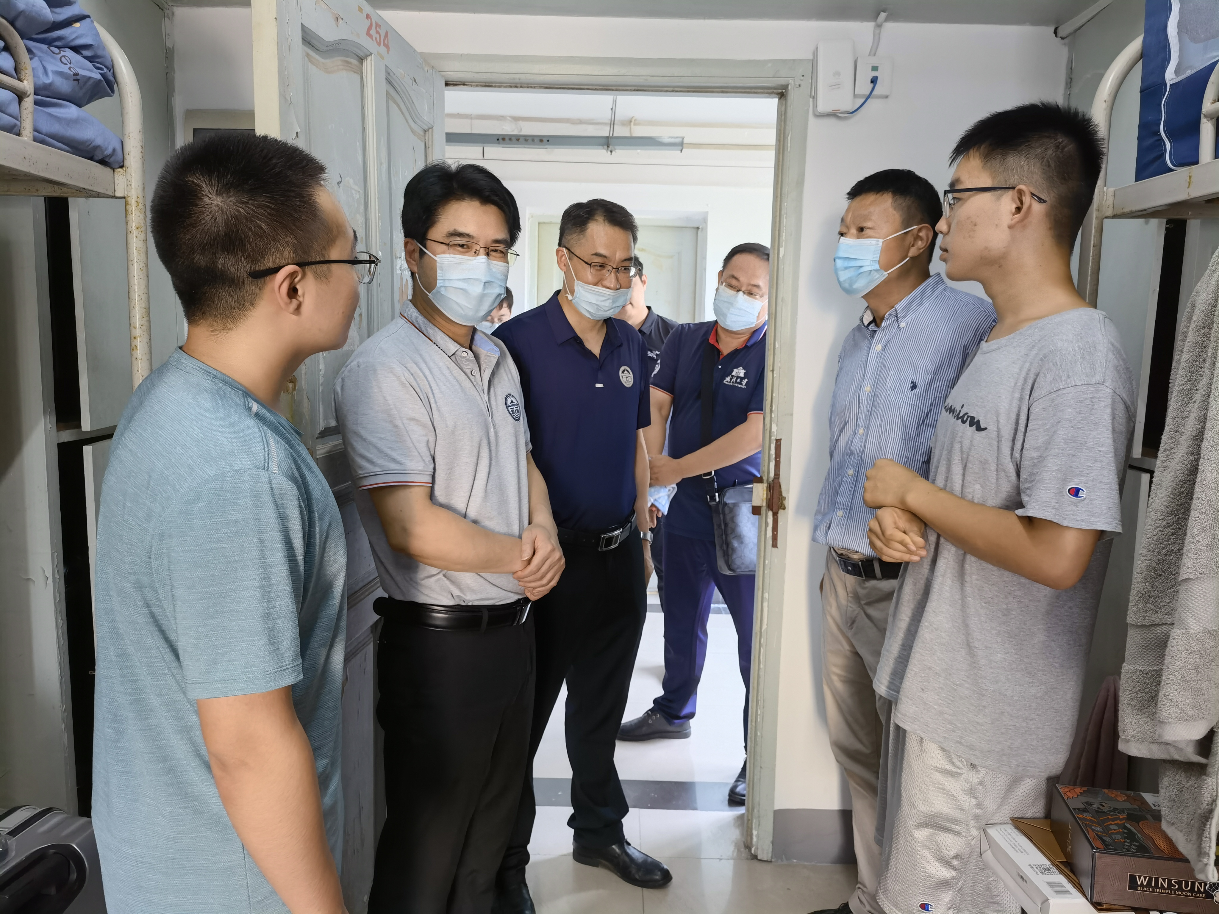 报到第二天,正当新生在宿舍内阅读新生手册时,公司党委书记周伟、经理熊立华、党委副书记张栋梁、副经理严鹏及员工工作办公室的辅导员们来到三舍和七舍走访慰问威廉希尔足球官网的新同学,并对他们的到来表示热烈欢迎,给予真挚问候。