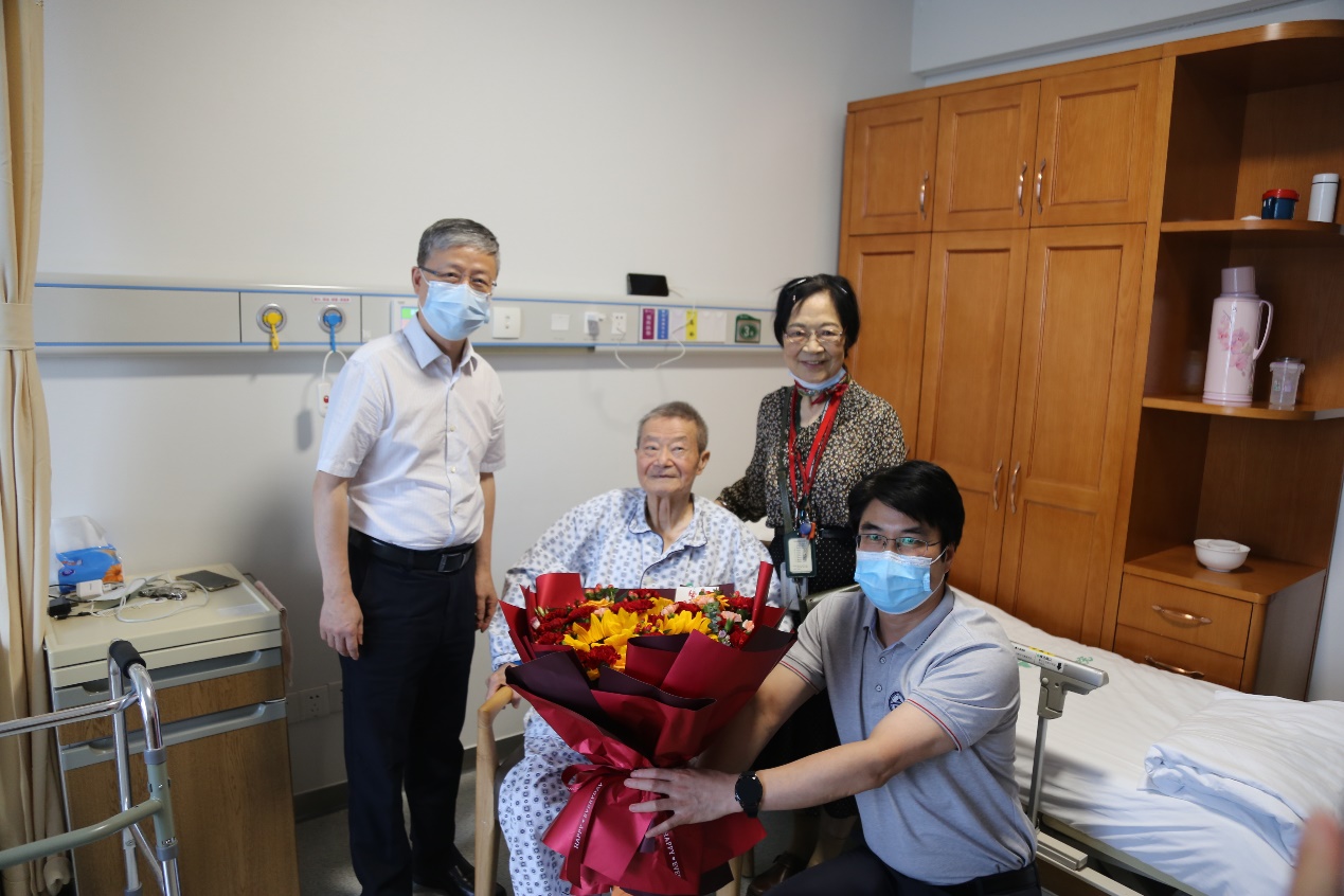 9月20日下午,公司党委常务副书记黄泰岩前往同济医院看望慰问茆智院士,并致以90岁生日的祝福。公司党委书记周伟、副书记龚文德、茆院士科研团队代表等陪同看望慰问。