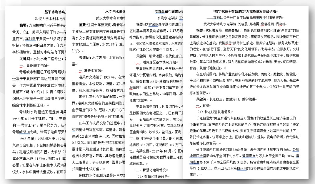 本次实践主题与学科紧密结合,并依托学院教师相关研究课题,实践队成员来自学院的四个本科专业——水利水电工程、水文与水资源工程、港口航道与海岸工程、农业水利工程。在实践中,同学们来到与所学专业相契合的调研地点,更好地将专业所学与实际运用相结合。在青铜峡水电站和三峡水利枢纽,水利水电工程专业的同学认真了解大型水电站发展的历史沿革、工作原理、日常运转情况及其综合效益;在长江上游水文水资源勘测局和长江中游水文水资源勘测局岳阳分局,水文与水资源工程专业的同学从全新的角度学习水文勘测工作原理、水文分析计算、水质水情监测分析、仪器设备使用等专业知识;在长江重庆航道局和果园港,港口航道与海岸工程专业的同学来到航道指挥中心和现代物流港口,实地观摩“三维数字航道系统”运行,了解长江航运价值、现代化航道建设、智能港口建设等情况;在宁夏渠首管理处大坝管理所,农业水利工程专业的同学实地参观宁夏引黄灌区相关设施,了解宁夏引黄灌区的发展历史及其对农田灌溉所起到的作用。