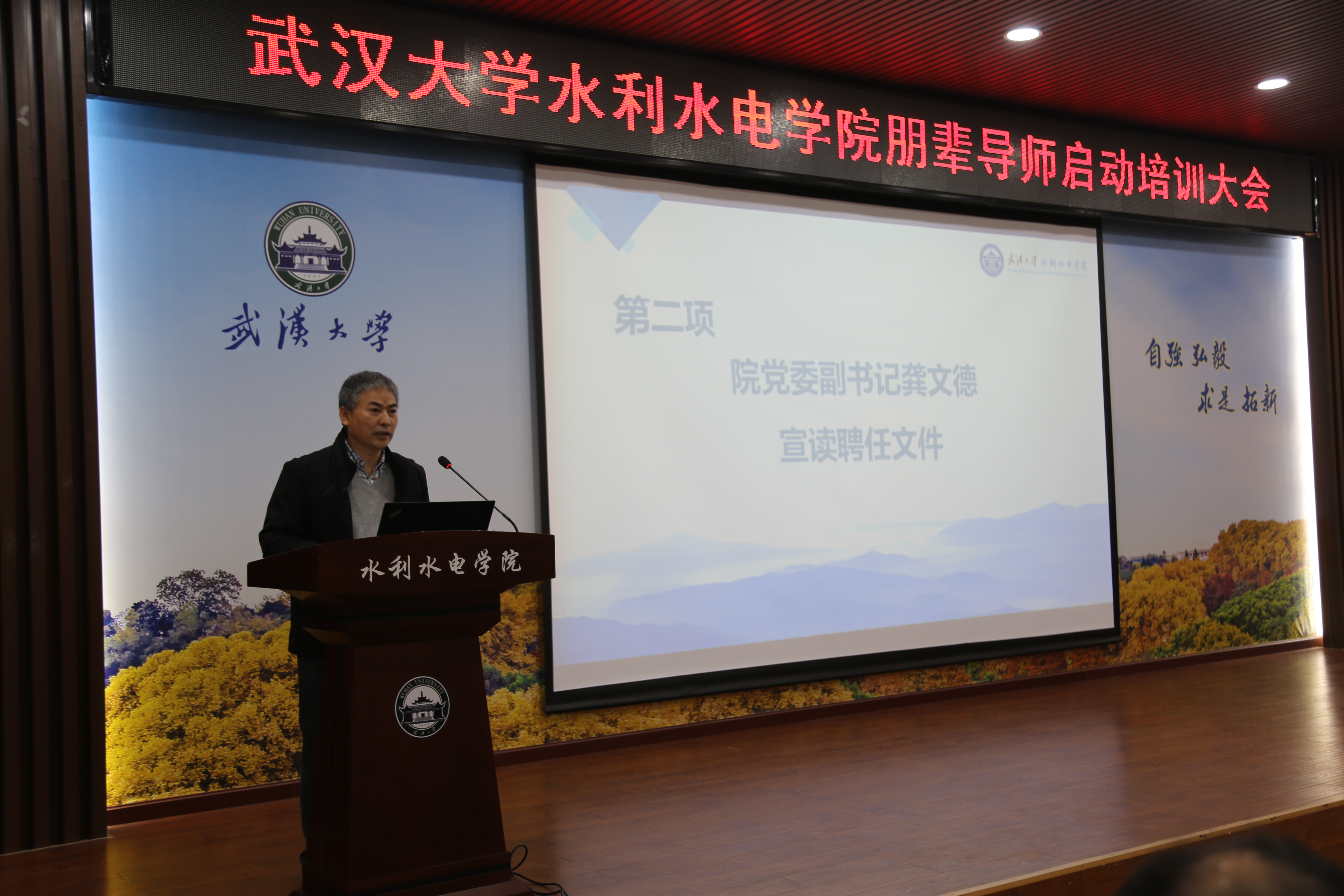 接下来,由龚文德宣读朋辈导师聘任文件。学院共遴选90名优秀研究生担任朋辈导师,与本科生结对开展专业学习、科技创新、社会实践等方面的指导,力求打造一支德才兼备、能担大任、全面发展的朋辈导师队伍。