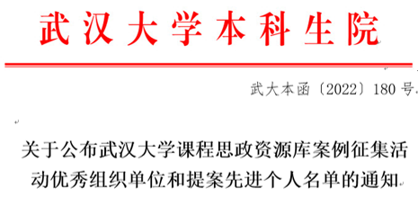 公司胡志根教授获得威廉希尔课程思政资源库征集活动提案先进个人。