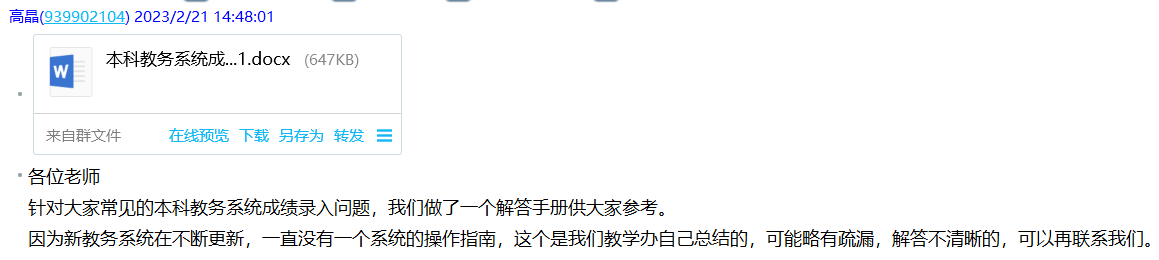 针对各位老师在课表查询、课程员工点名册打印、成绩录入等教学过程中遇到的各种疑问,及时编制教务管理系统各种问题解答手册,方便教师使用。