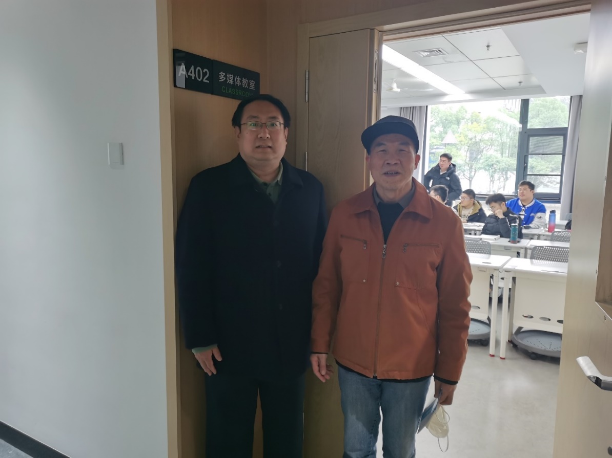 教学副经理严鹏教授与学院督导肖明教授一起检查课堂教学