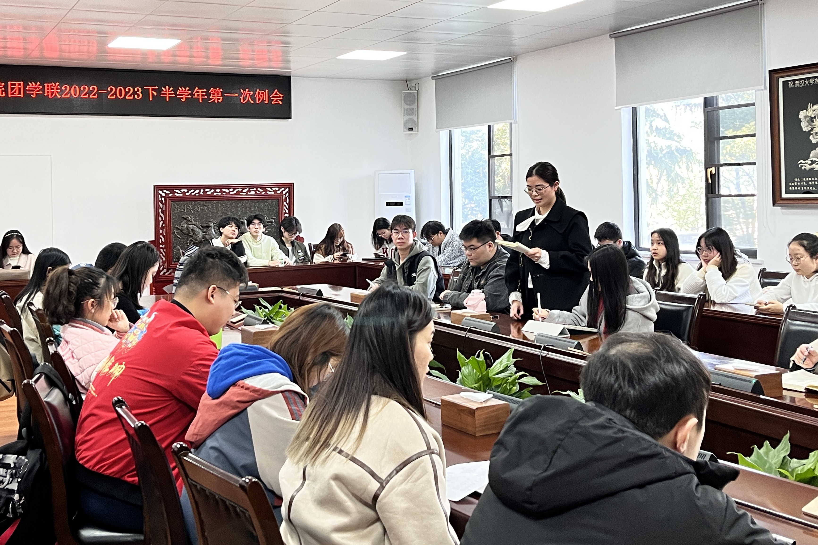 首先,分团委、员工会和社团指导中心各部门的负责人对上学期的工作进行了认真总结,并就未来即将开展的活动做了具体规划。主席团成员们结合分管部门相关工作,提出了本学期工作中的重点与亮点,为新学期团学工作的顺利开展指明了方向。