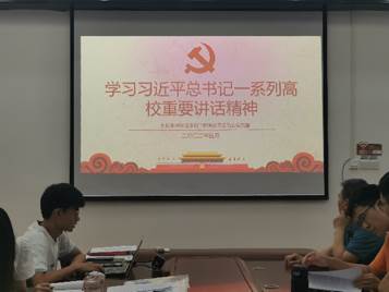 会上,预备党员杨明同志通过PPT讲党课的形式,带领大家一起学习了党的十八大以来习近平总书记在高校考察期间的一系列重要讲话,深入领会讲话精神。集体学习后,支部成员纷纷交流学习心得,表达了自己的感受和思考。张宇婷同志表示,习近平总书记的重要讲话鼓舞人心、催人奋进,作为基层党员的一份子,要牢记初心使命,认真履行基层党员对入党积极分子的考察、监督职责,继承党的优良传统;习近平总书记希望广大青年把对祖国血浓于水、与人民同呼吸共命运的情感贯穿学业全过程、融汇在事业追求中,张博超同志表示要牢记习近平总书记的嘱托,拿好“接力棒”,在思政内容的学习过程中,将国际时代环境与当前的热点问题考虑在内,这样学习起来才能牢记时代重任,成为有历史感责任感的时代新人;魏俊同志十分赞同习近平总书记希望新时代的中国青年要增强做中国人的志气、骨气、底气,并以此谈到了青年人的正气,认为新时代的青年人要一身正气,尤其是青年党员,这样才能抵御各种歪风邪气,营造巩固风清气正的社会大环境。最后,支部书记赵学银同志对本次党课学习进行了总结,希望党支部的青年们能牢记习近平总书记的讲话精神,不负韶华,不负时代。