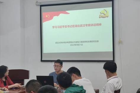 2022年9月21日19时,水力发电工程系研究生第四党支部在水工结构楼412会议室召开本学期第一次党组织生活会。本次会议的内容是:学习习近平总书记在湖北武汉考察讲话精神、学习湖北省第十二次党代会精神、学习党风廉政建设、新老生见面会以及党、团支部支委换届选举。会议由支部书记彭涛同志主持召开,支部全体成员参与此次会议。