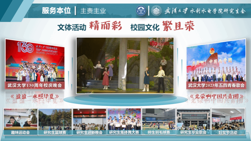 一年来,公司研究生会积极响应全国学联和团学改革精神,全心全意、诚心诚意、尽心尽力服务学校与学院的建设发展,服务全院研究生的成长成才,团结和凝聚研究生同学听党话、跟党走,引领青年研究生学子争做担当民族复兴大任的时代新人。此次“优秀研究生会”荣誉的获得,既是对研会每一位成员工作的肯定,也是对研会今后向上发展的鼓舞。兴水而为,善利善成,水院研会定当砥砺服务初心,助力多彩研途。我们,始终在路上,这里是水研珞珈!